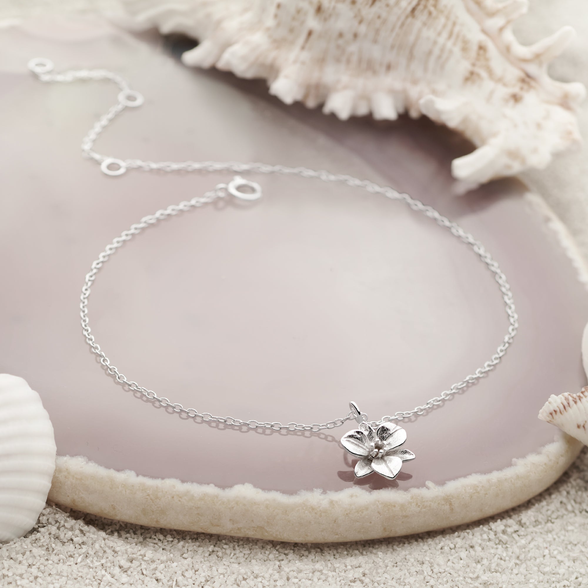 Created in shimmering sterling silver and featuring a pretty flower charm, this anklet is the perfect finishing touch to your Summer wardrobe.