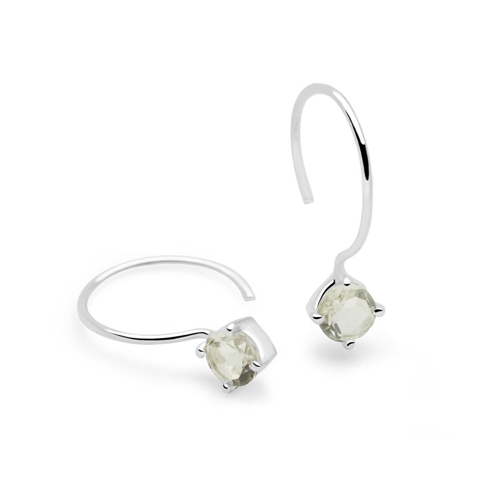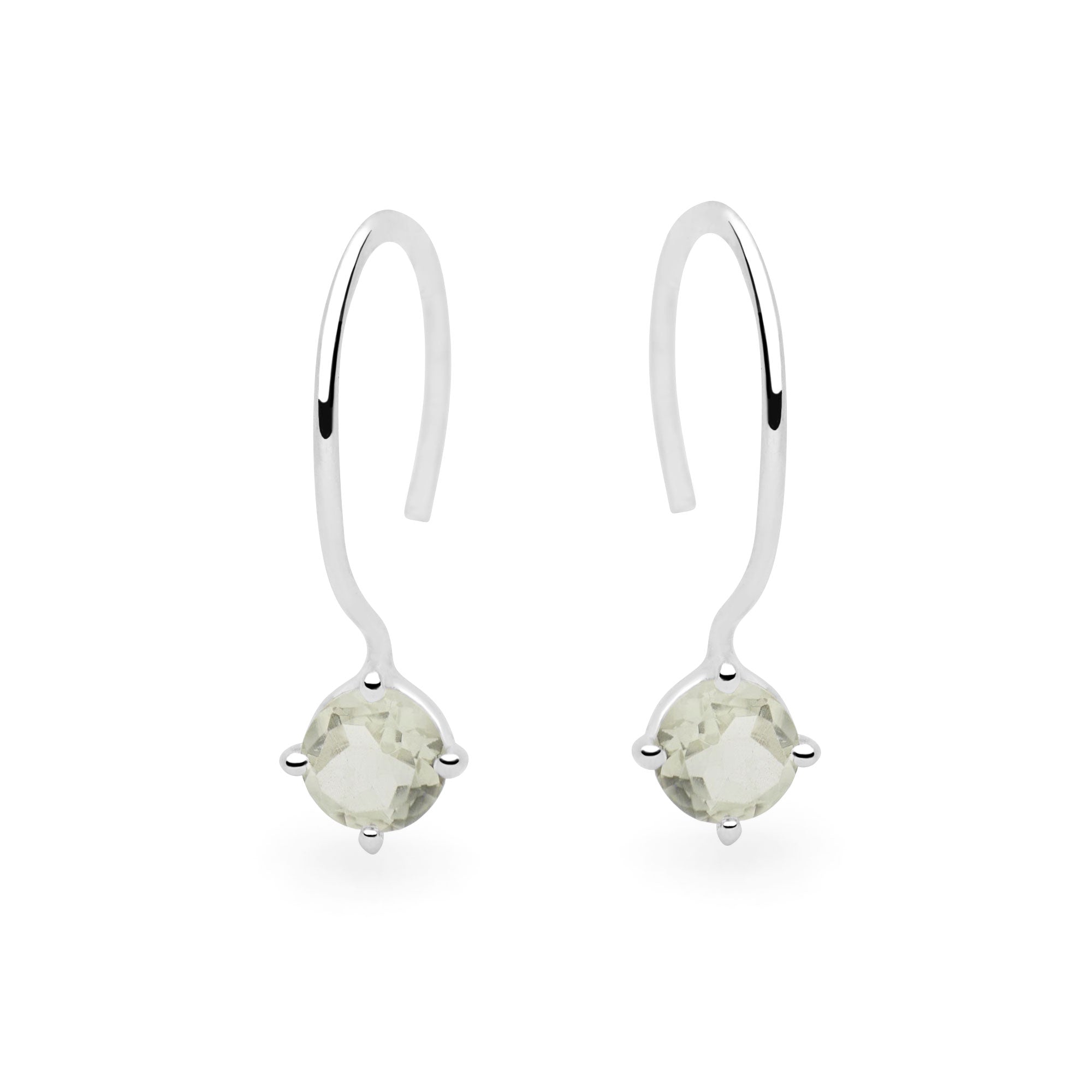 Sleek swirls of silver finished with a drop of green amethyst radiate flashes of pale, mint green from your lobe.