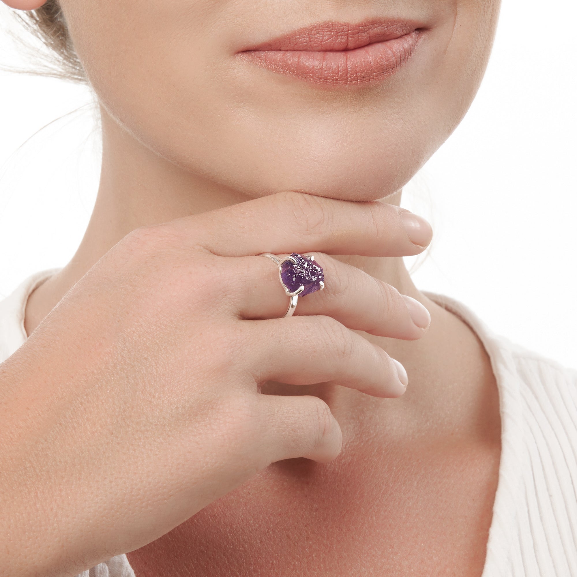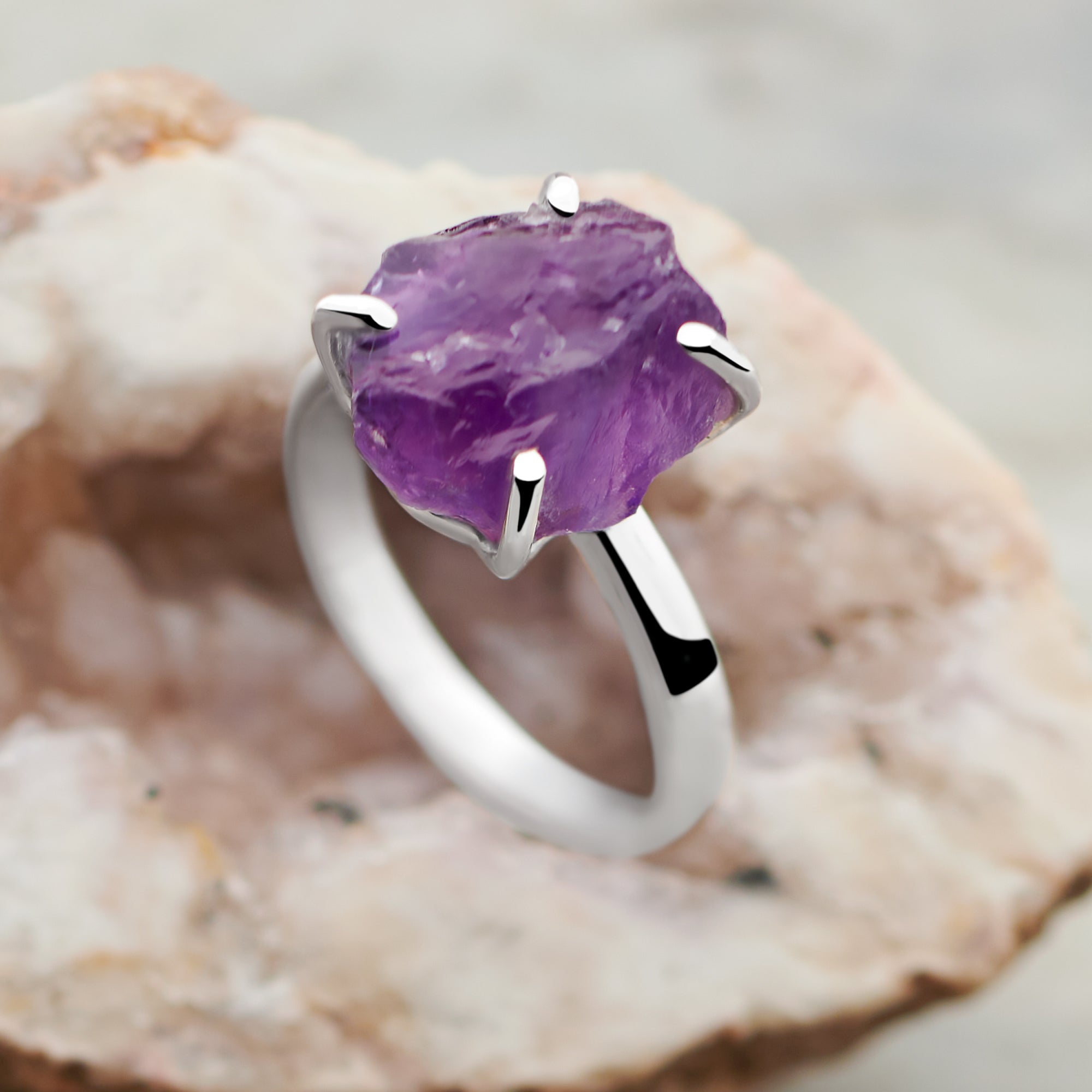A stand-out piece with a beautiful deep purple amethyst stone. Amethyst is one of the most popular semi-precious stones in the world and has been used for adornment for at least 2,000 years. Amethyst is a very powerful and protective stone, and helps with stress and anxiety.