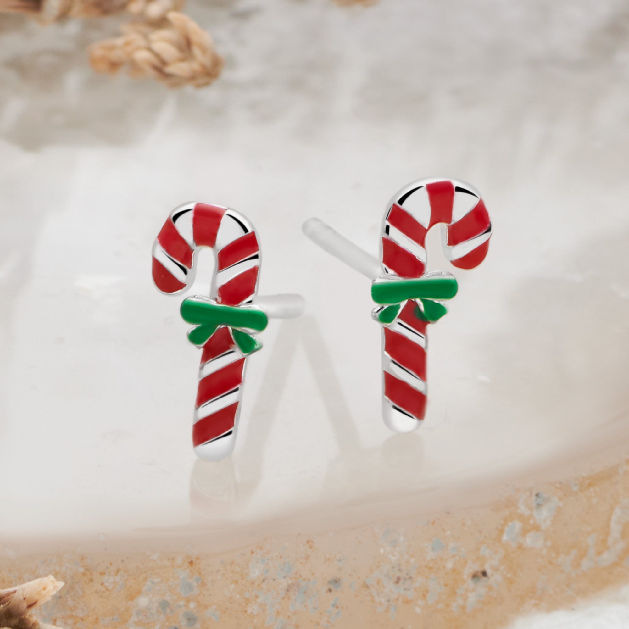 Colourful candy canes with a cute green bow sit pretty on the lobe. Perfect gifts for the festive season.