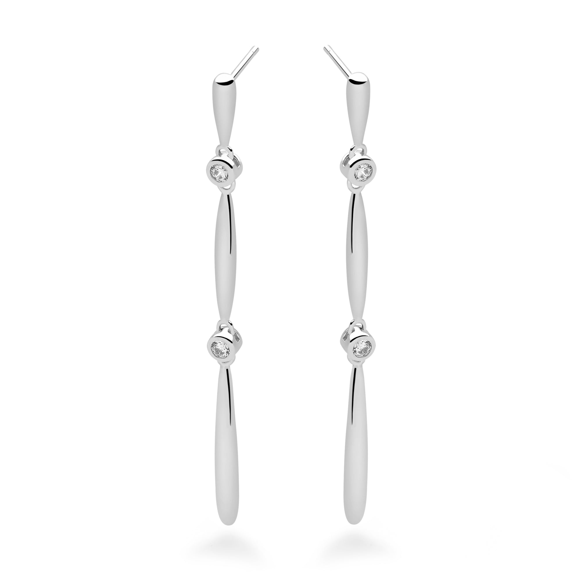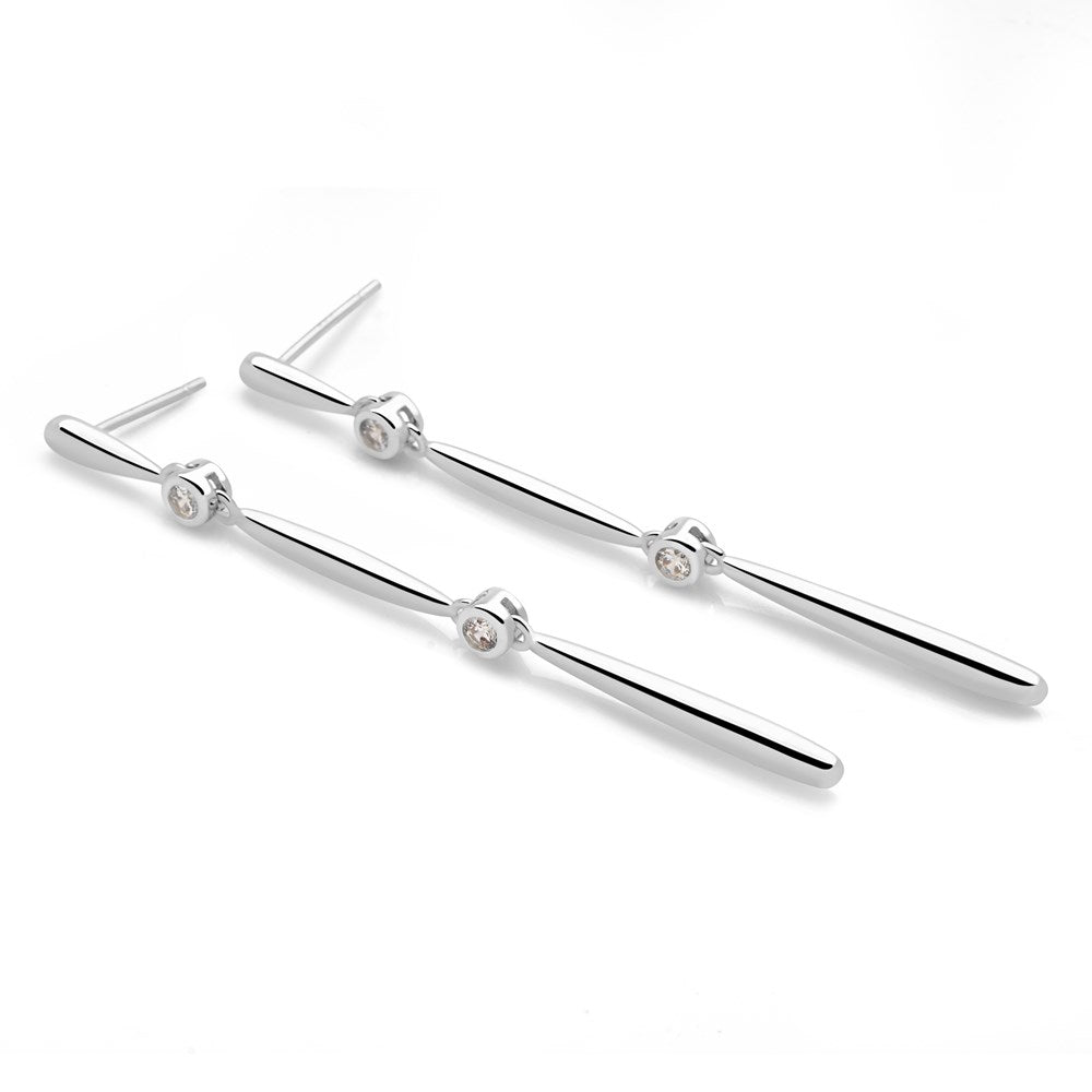 Elongated tear drops of silver with highlights of cubic zirconia, ooze elegance as they swing from your lobe.