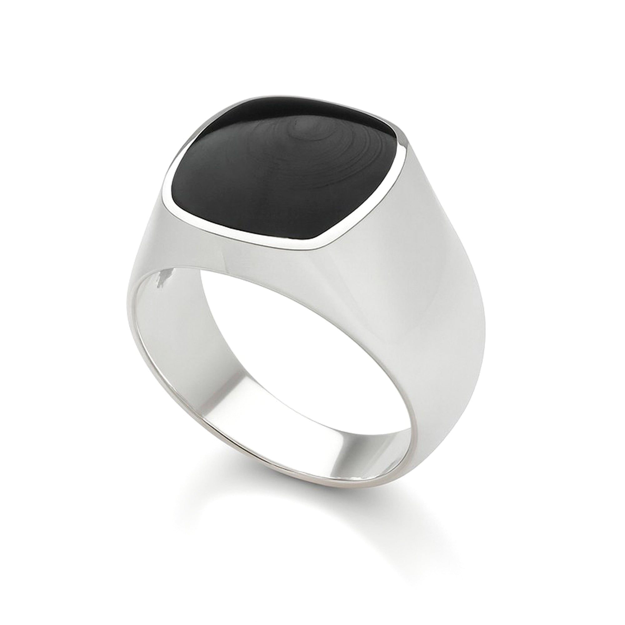 The clean, classic design delivers quiet confidence and enduring style, making it a staple piece for any men’s jewellery collection. The smooth, high polished silver band contrasts beautifully with the deep black face, creating a bold yet understated statement of confidence. Crafted from solid sterling silver and finished with a sleek black shell inlay that commands attention without saying a word.