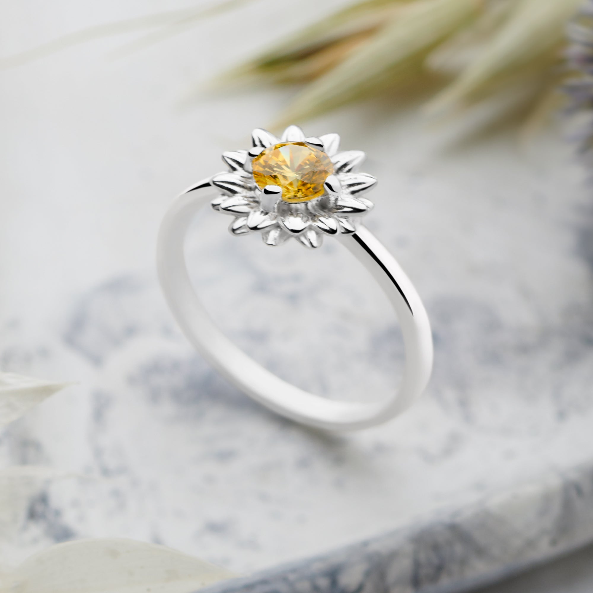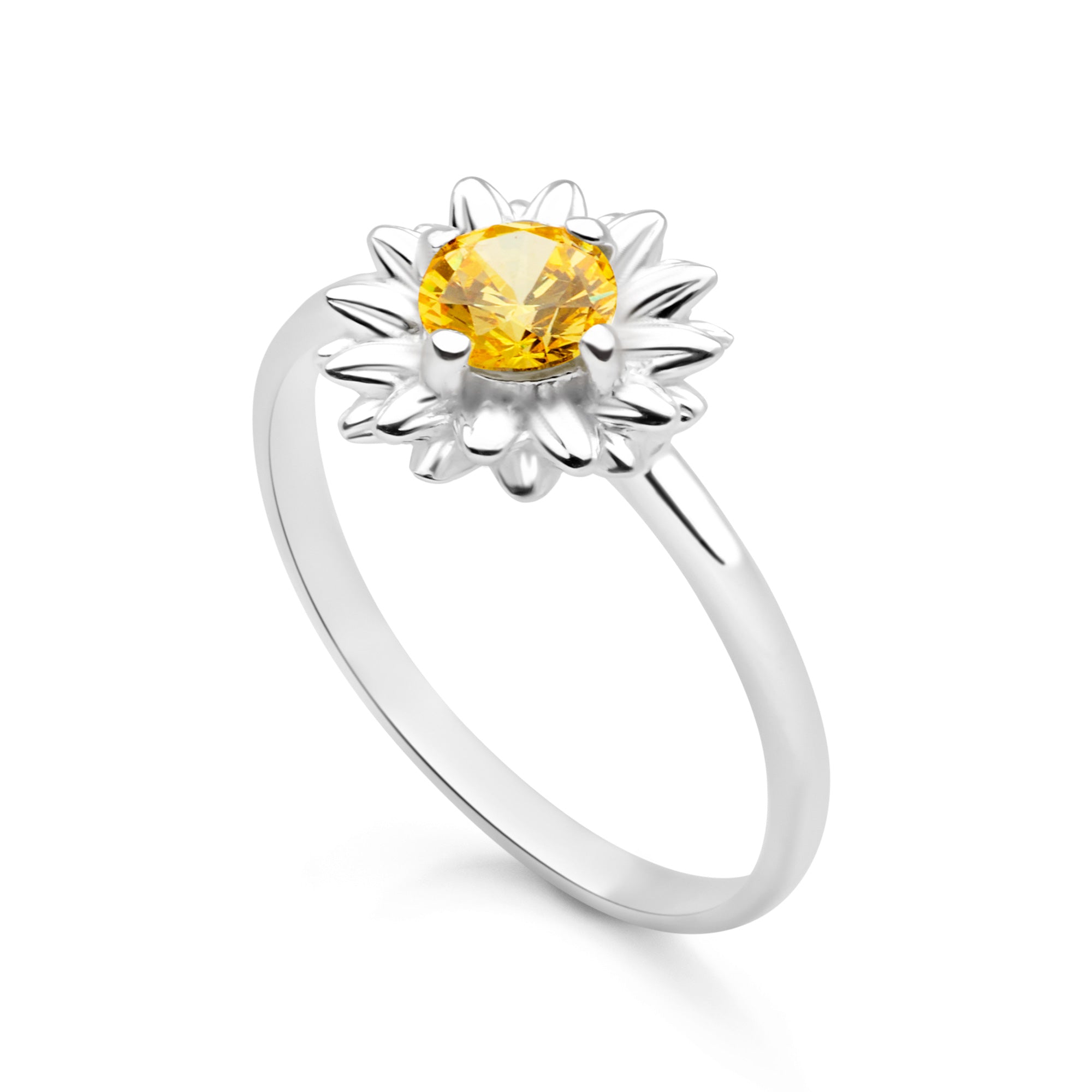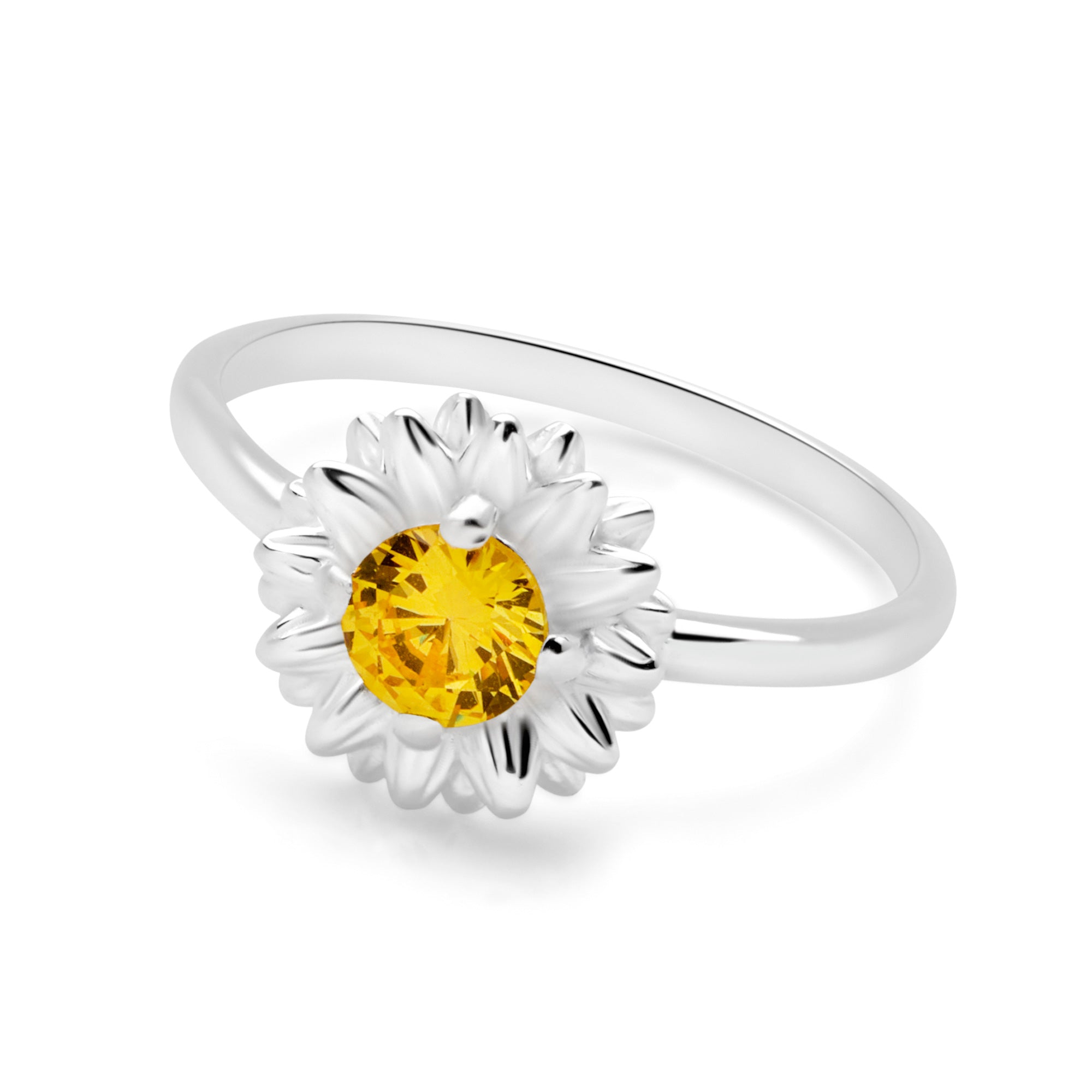 This pretty silver daisy is brought to life with a generous, sparkling yellow cubic zirconia at it's center.