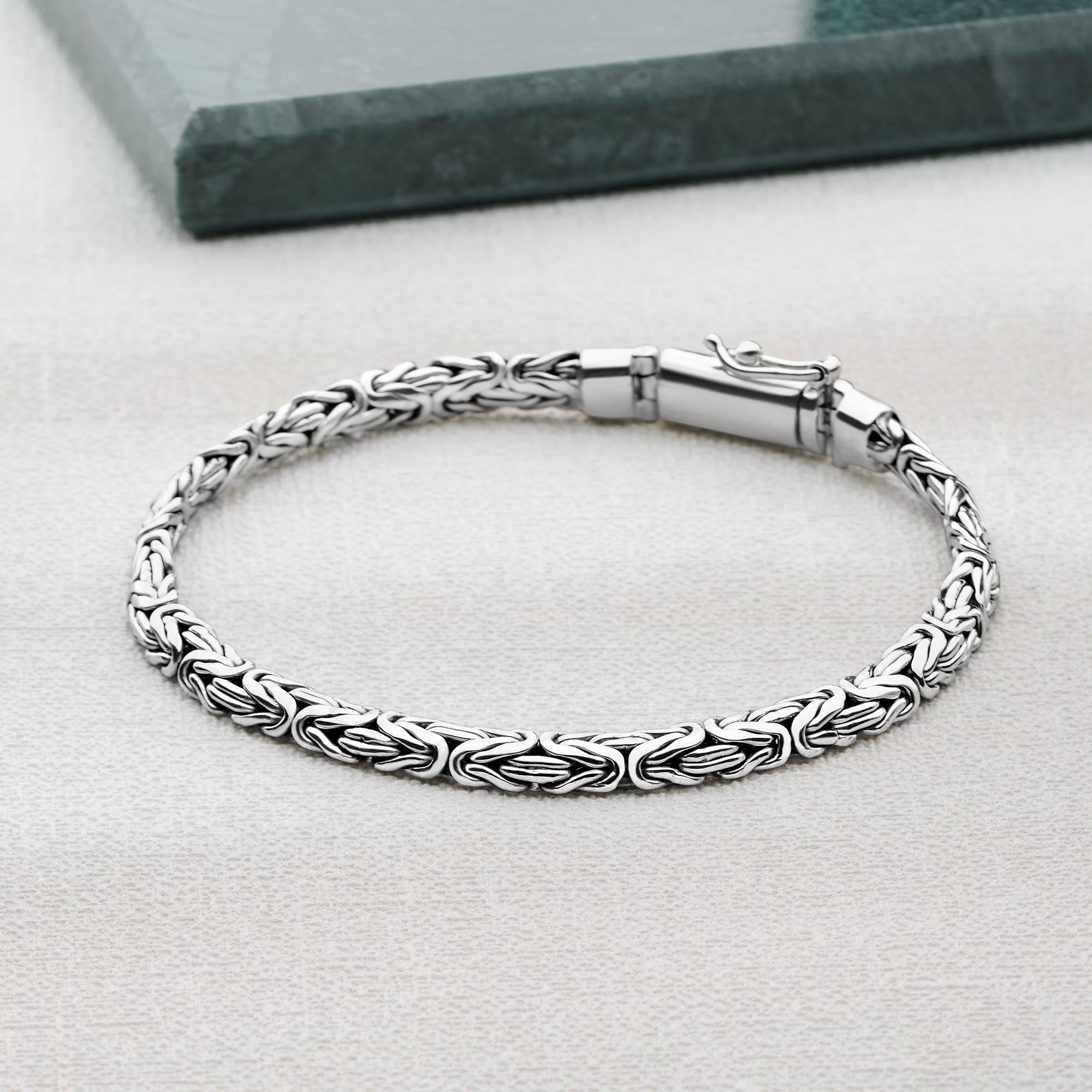 This stunning bracelet is exquisitely handmade with exceptional artistry and attention to detail. It features an intricate design inspired by traditional Indonesian methods. The silver is meticulously woven together, forming a beautiful and sturdy piece that sits around the wrist with elegance.