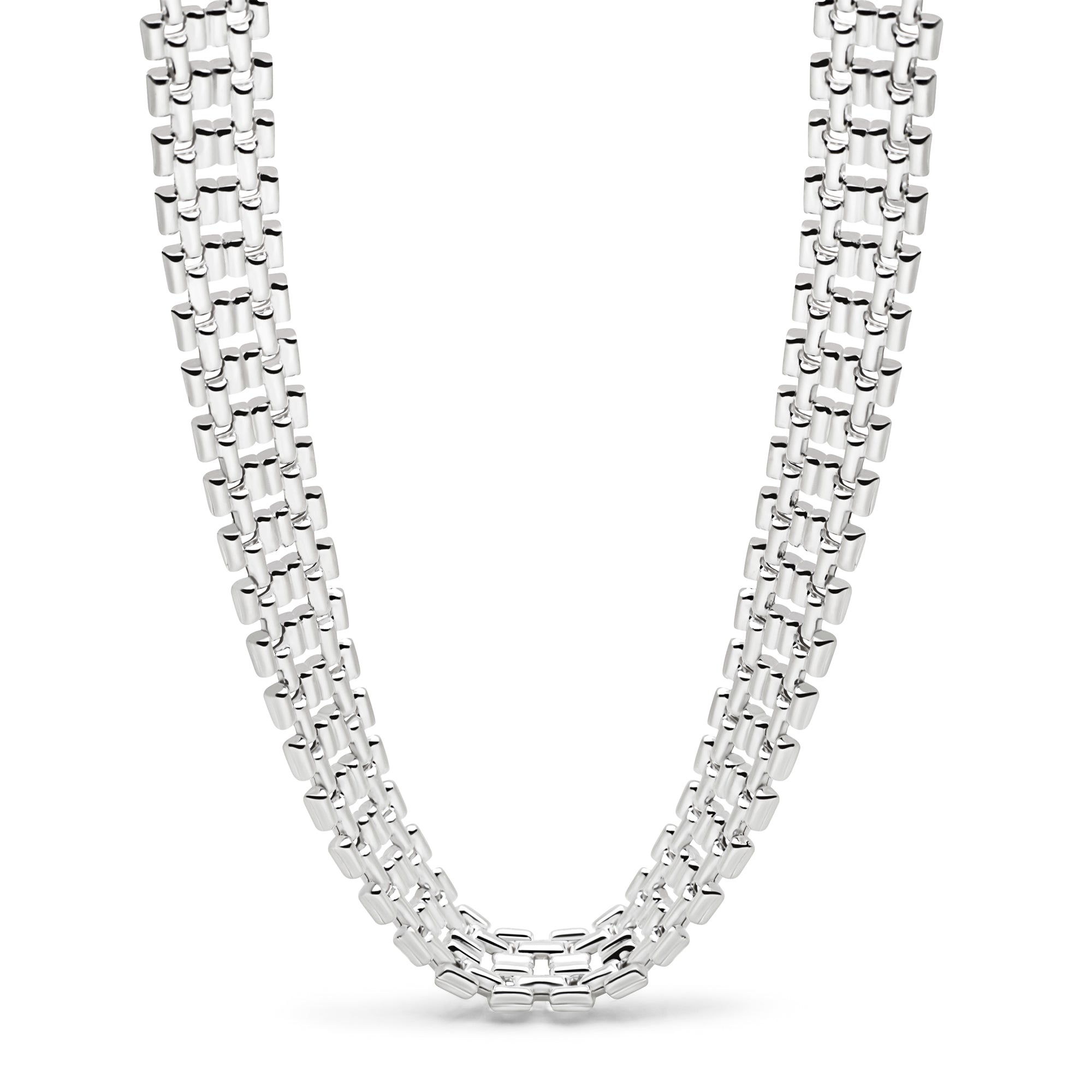 This wide silver necklace oozes timeless elegance with its fluid silver links and mirror shine finish.