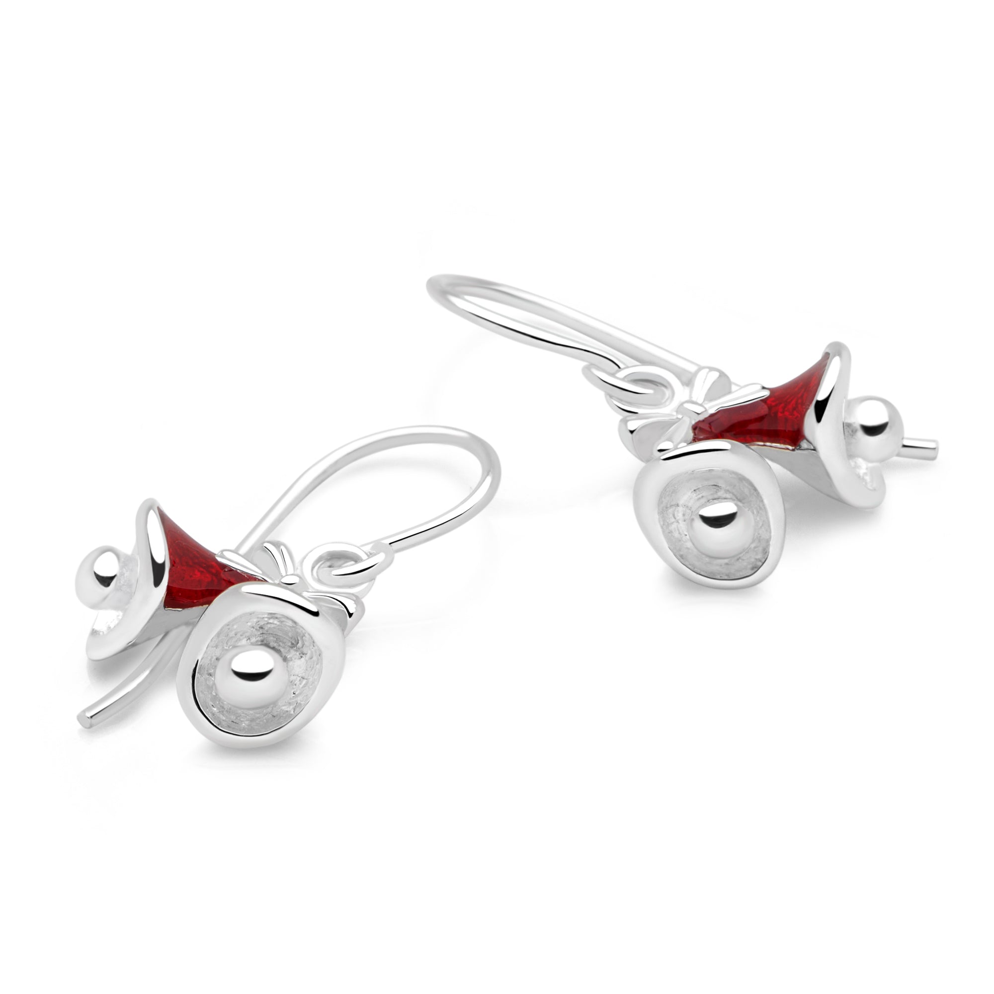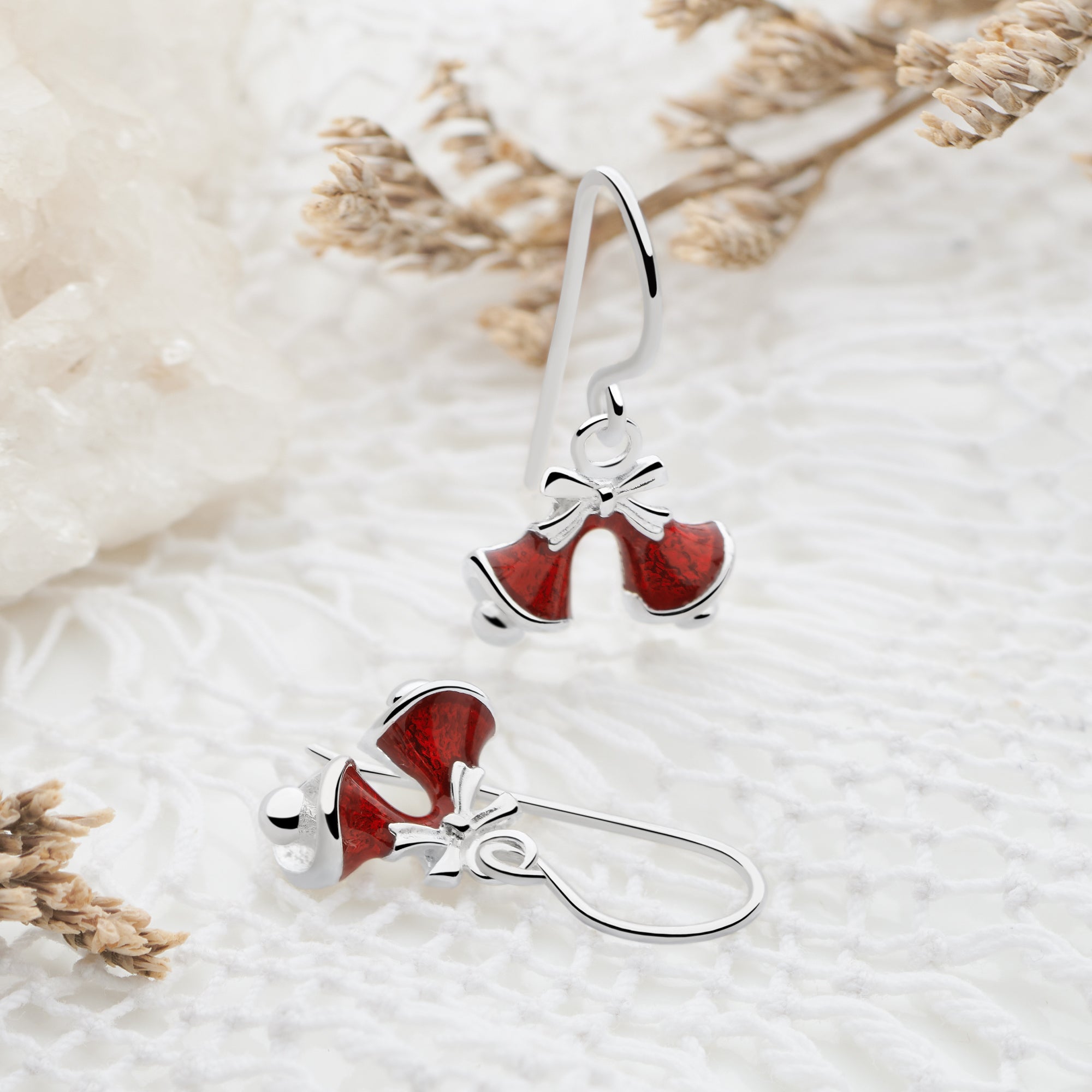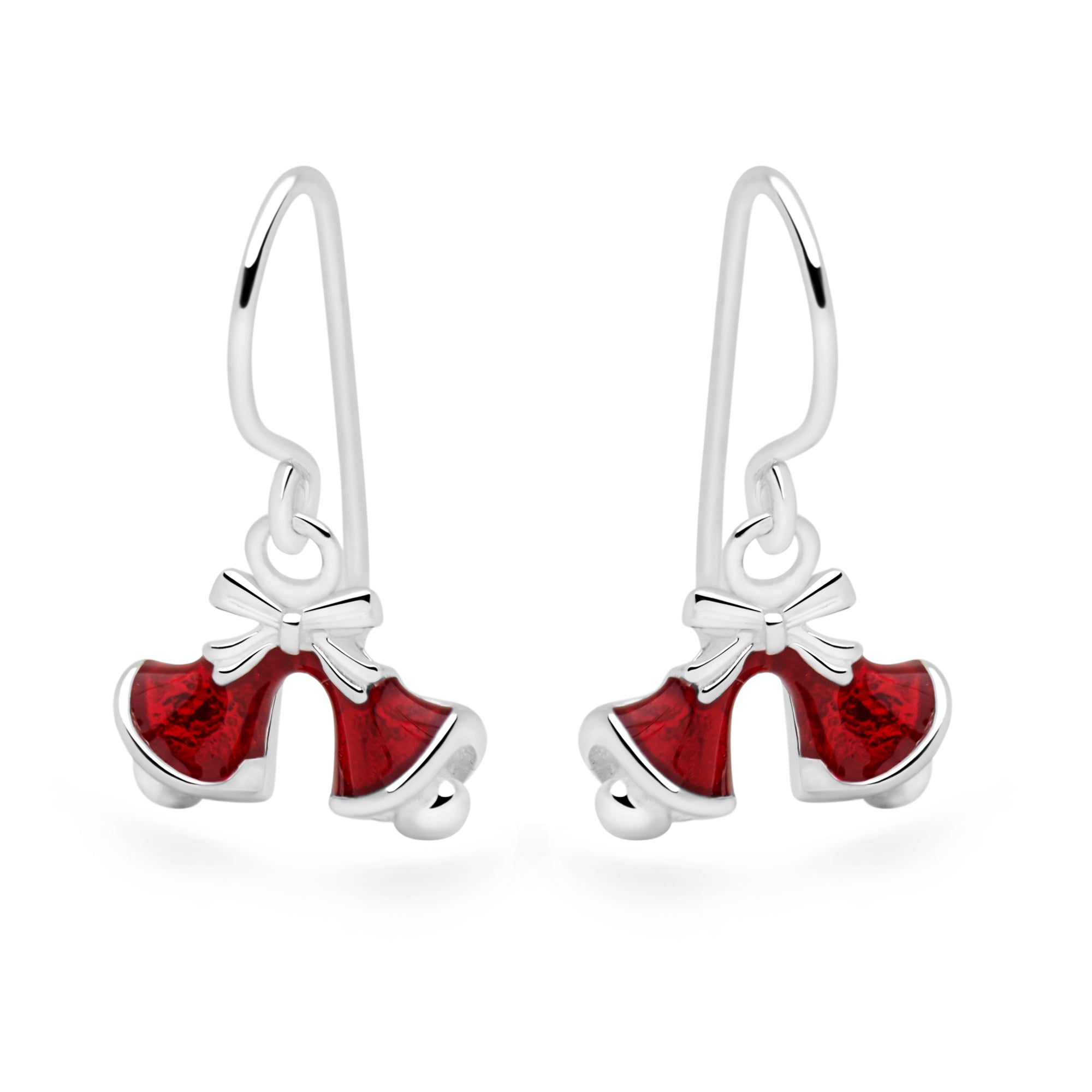 Classic Christmas bells finished with a rich, red enamel coating adds festive elegance to your outfit.