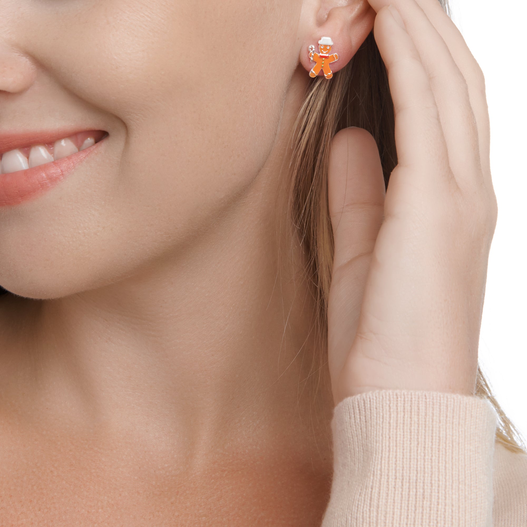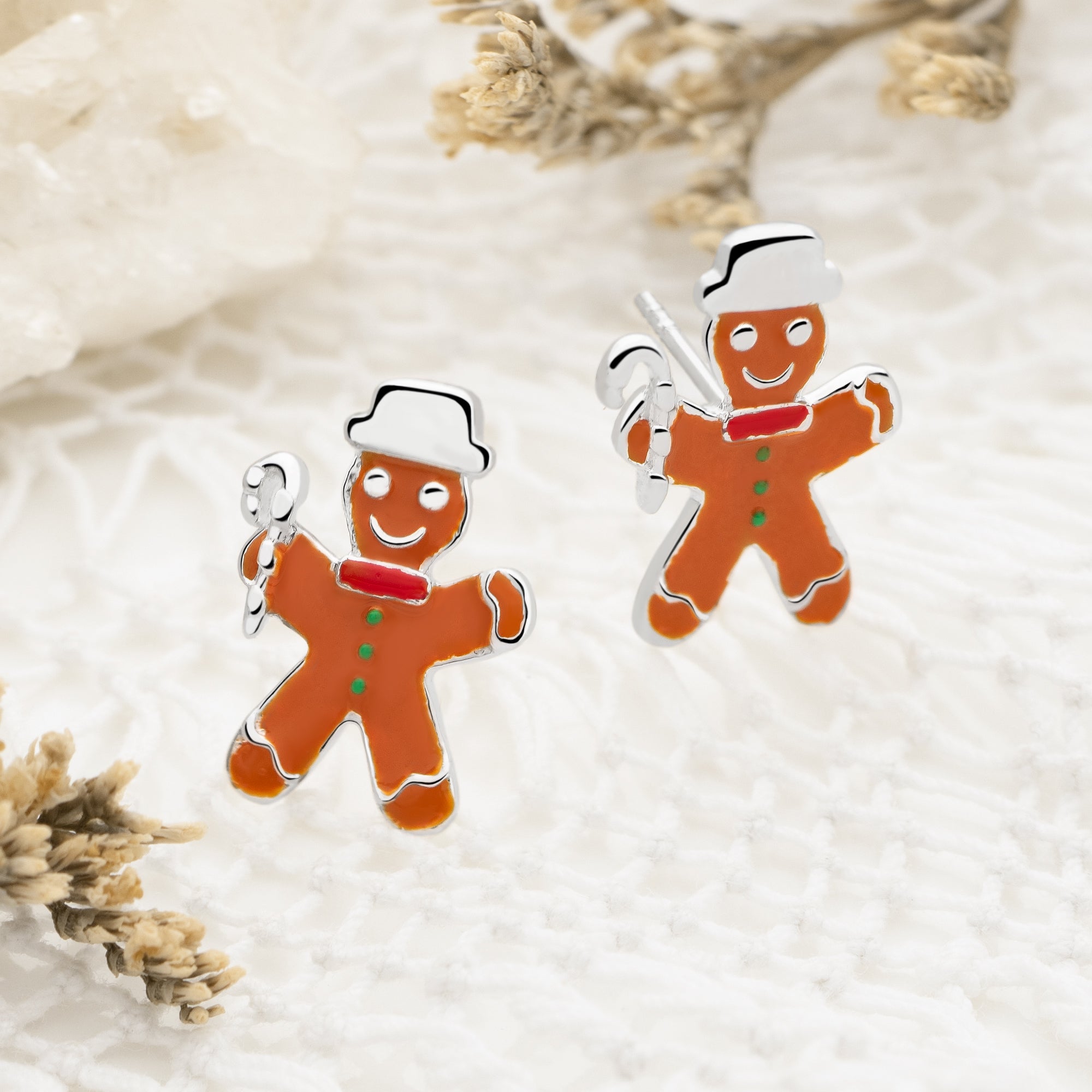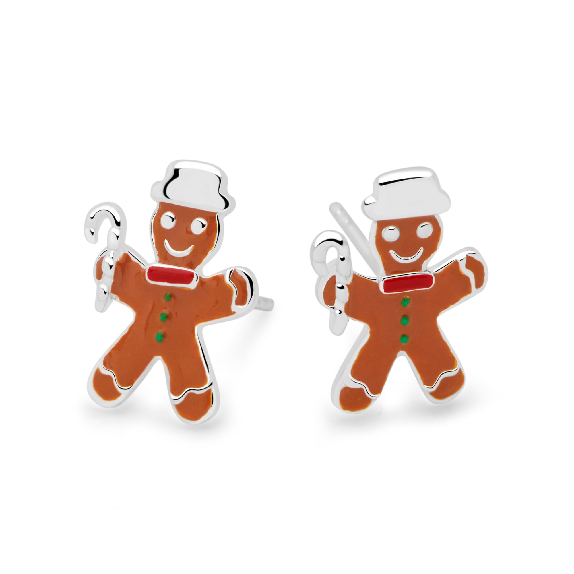 Colourful gingerbread men with silver hats and candy canes sit pretty on the lobe. Perfect gifts for the festive season.