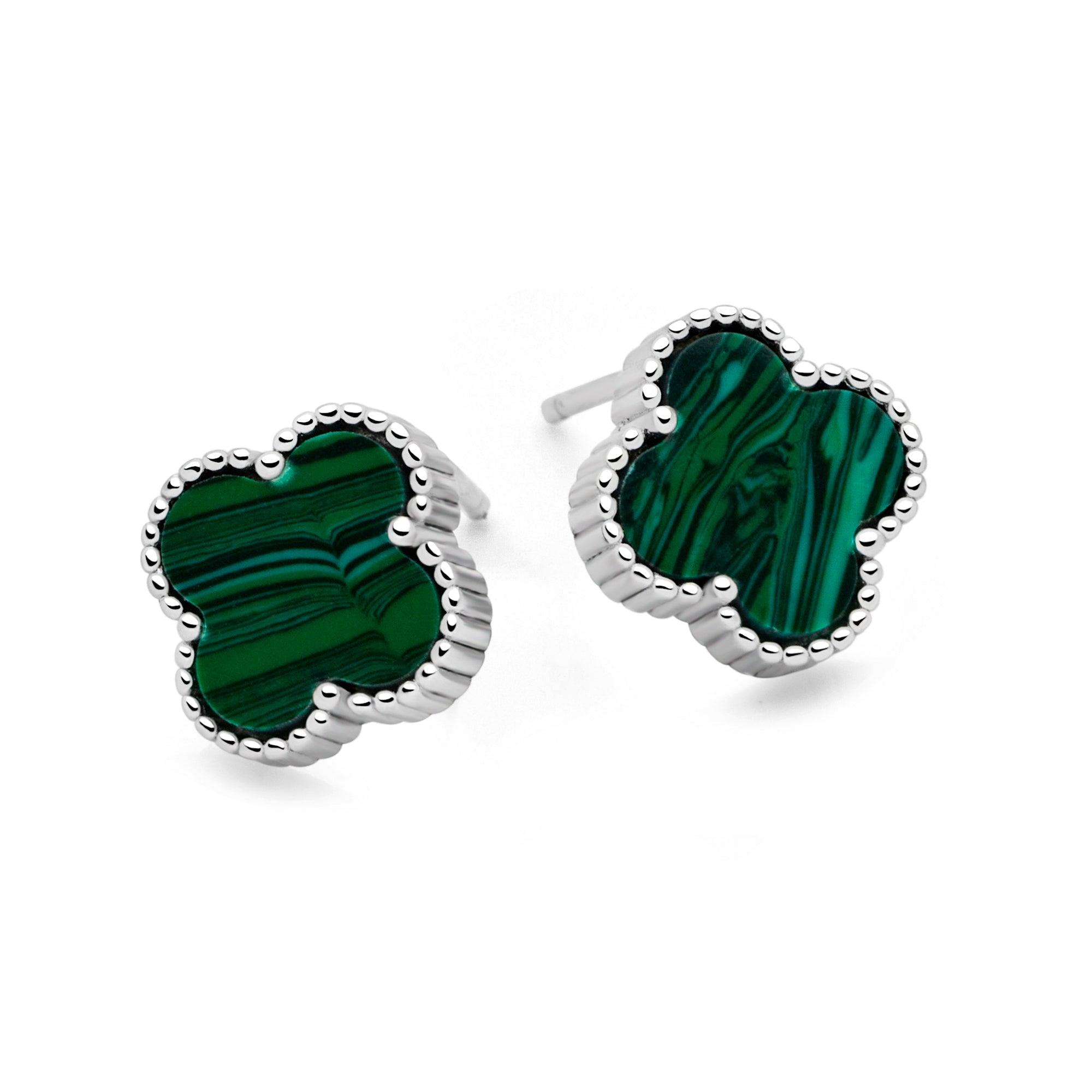 Bold and Bright, these stud earrings feature a rippled green resin clover set in rhodium-plated silver. Each clover gently shines, symbolizing luck and timeless elegance. Subtle yet striking, they’re the perfect everyday accessory or a thoughtful gift for someone special.