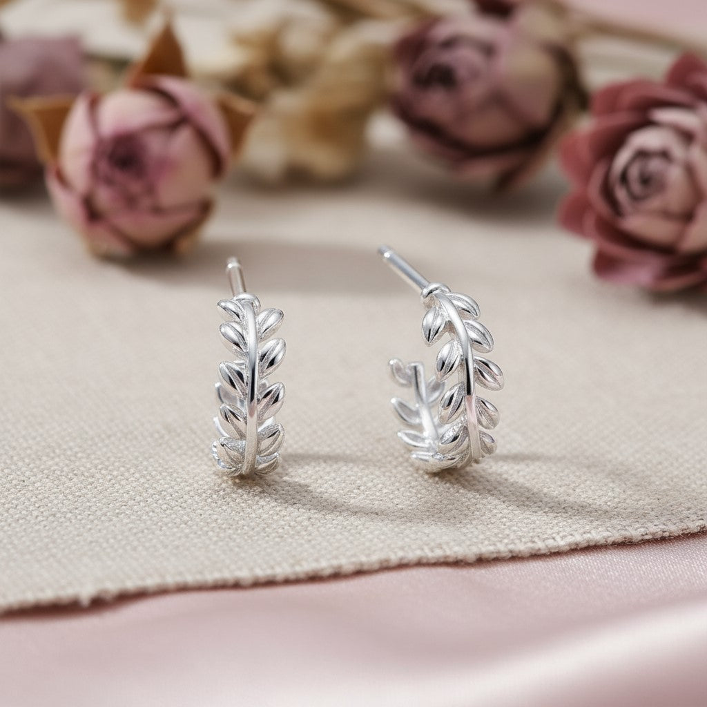 Inspired by the classic laurel wreath, these silver hoop earrings celebrate enduring beauty and quiet confidence. Each polished leaf curves delicately around the hoop, creating a look that’s both natural and sophisticated — a modern tribute to timeless elegance.