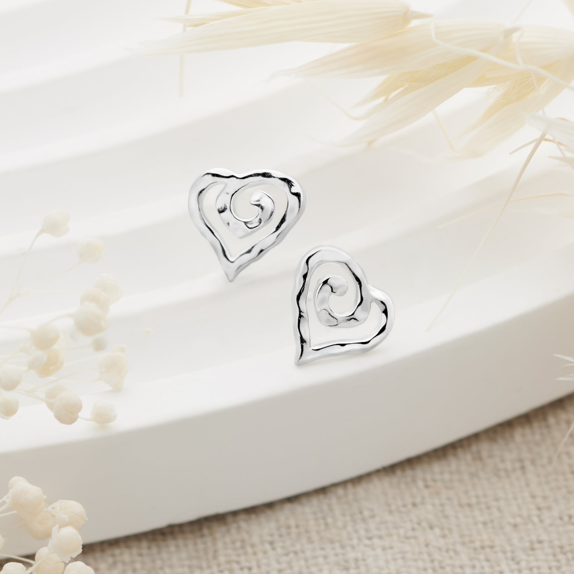 At the center, the heart gracefully swirls into a spiral, symbolising growth, connection, and the beautiful journey inward. Lightweight and full of soul, they’re a heartfelt expression of artistry and meaning - perfect for everyday wear or as a thoughtful gift.Size: 9x8mm. Includes butterfly backs.