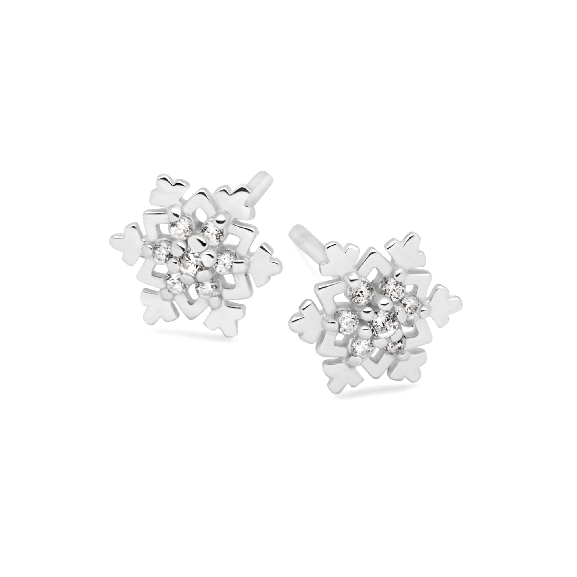 These cute, sterling silver snowflakes are intricately cut and highlighted with subtle cubic zirconia sparkle. These fun, festive and lightweight studs make a perfect stocking filler or finishing touch to your Christmas wardrobe.