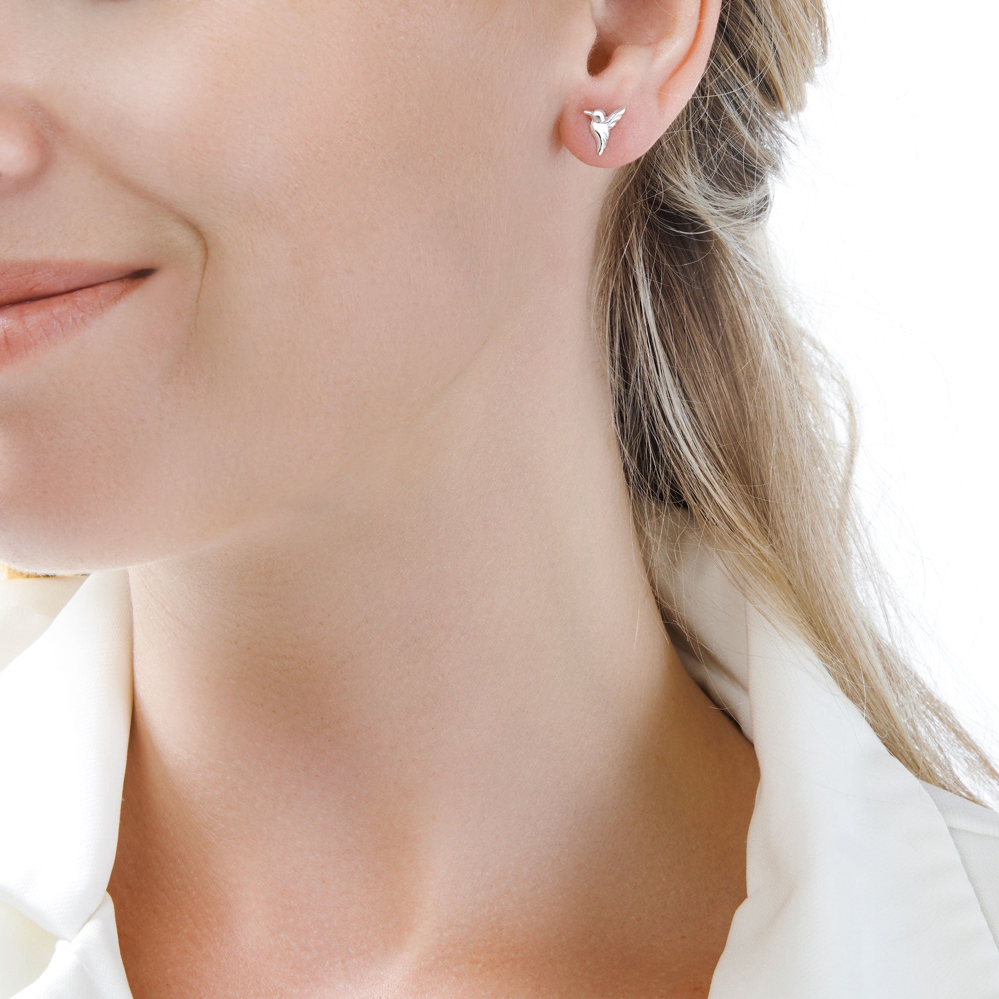 These delicate hummingbird studs sit sweetly upon the lobe.