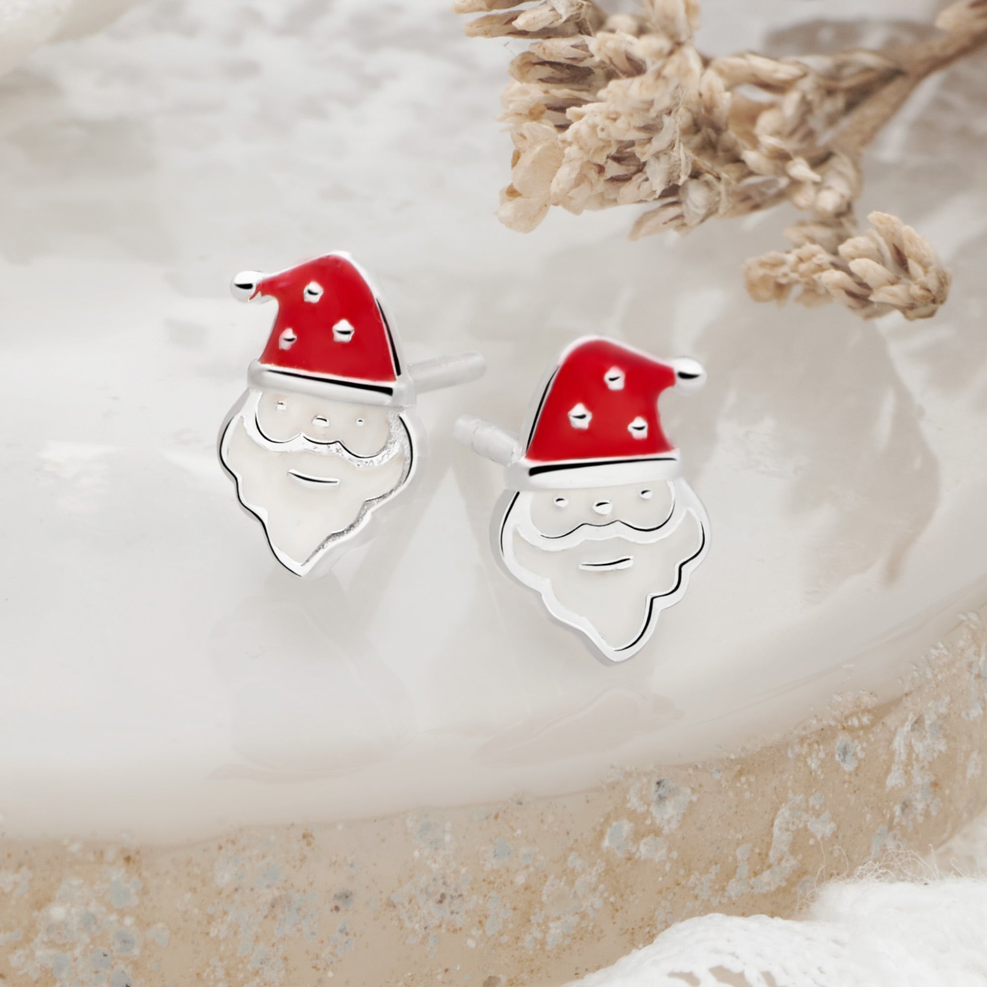 Mini Santa studs compete with his signature hat, sit pretty on the lobe. Perfect gifts for the festive season.
