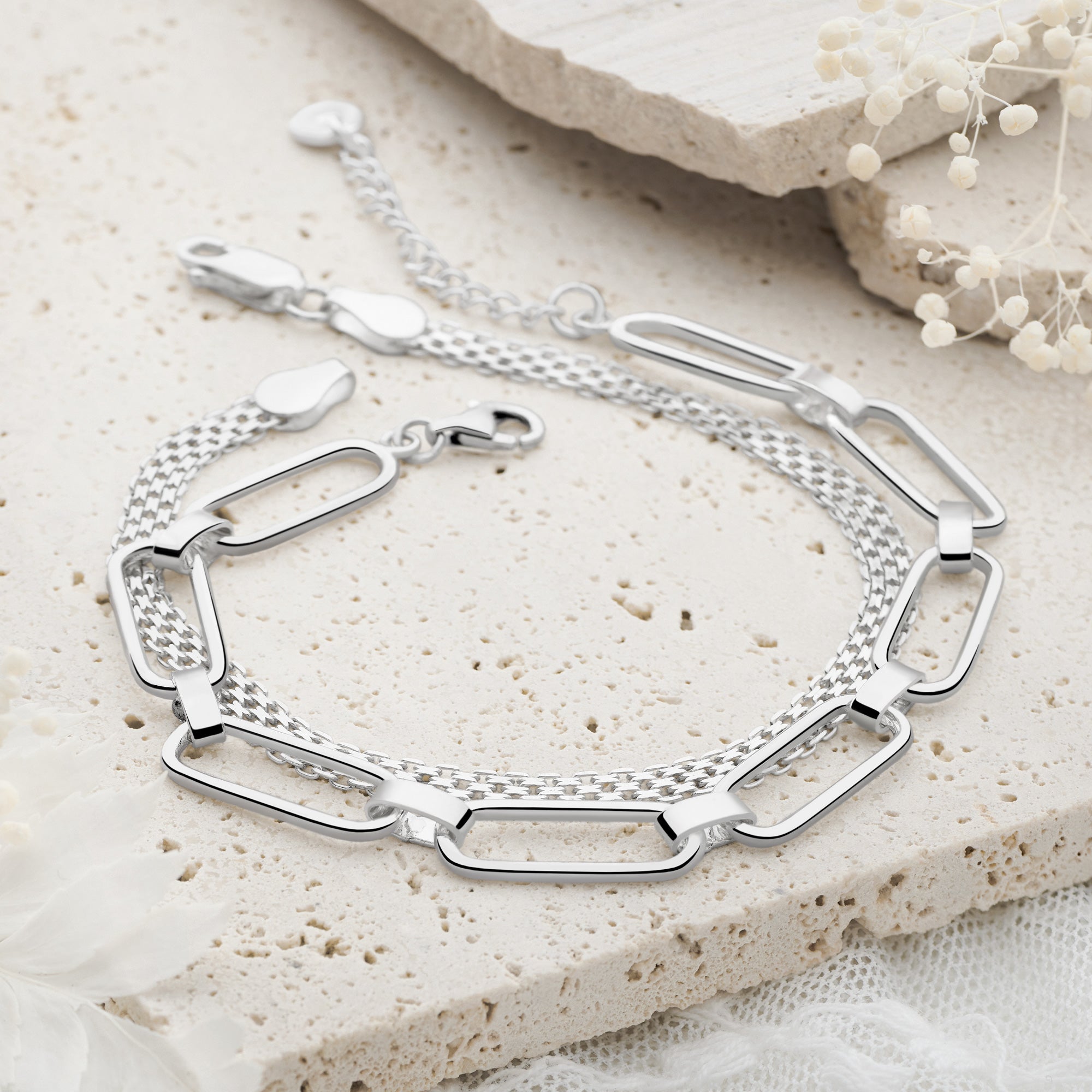 Oval Link Bracelet size: 18.5-23cm (adjustable).Channel Mesh Bracelet size: 19cm (inc clasp).