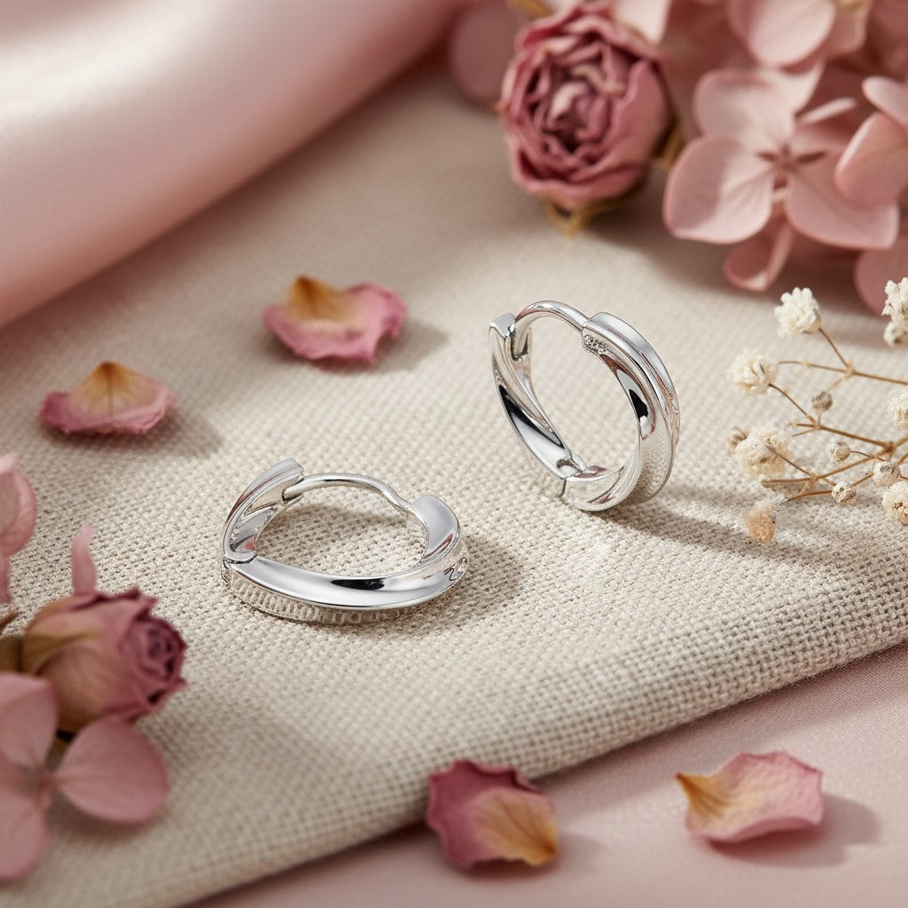 A modern reimagining of the classic hoop. These sterling silver earrings feature a graceful twist that flows into a soft point at the base, catching the light with every turn. Secured with a smooth hinged clasp for comfort and ease, they offer just the right balance of texture, shine, and sophistication.