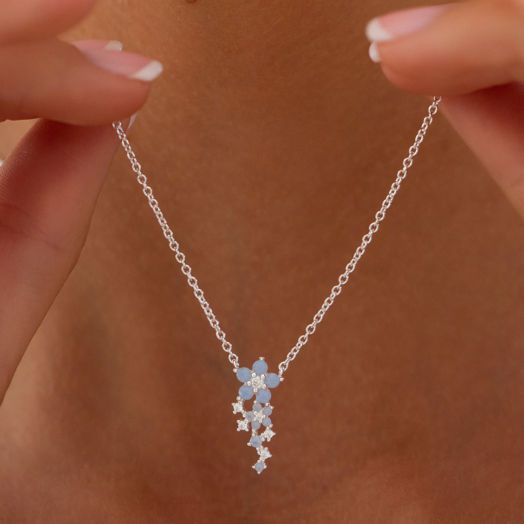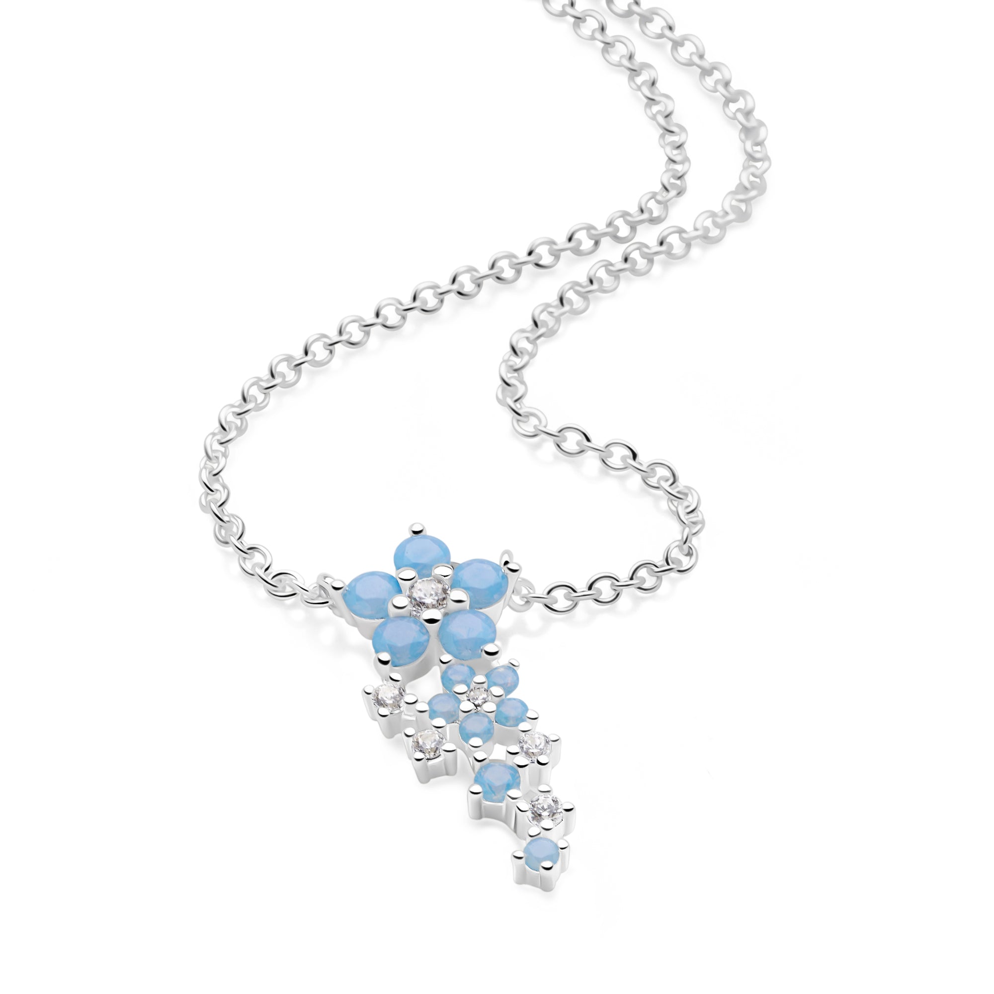 Delicate, radiant, and full of mystique this sterling silver necklace features a captivating flower design set with shimmering opal and sparkling clear cubic zirconia stones. The opalescent hues dance with light, creating a dreamy, ethereal glow, while the precision-cut clear zirconia adds brilliant sparkle. A symbol of beauty and transformation, the mystic flower makes this piece a timeless addition to any jewellery collection.