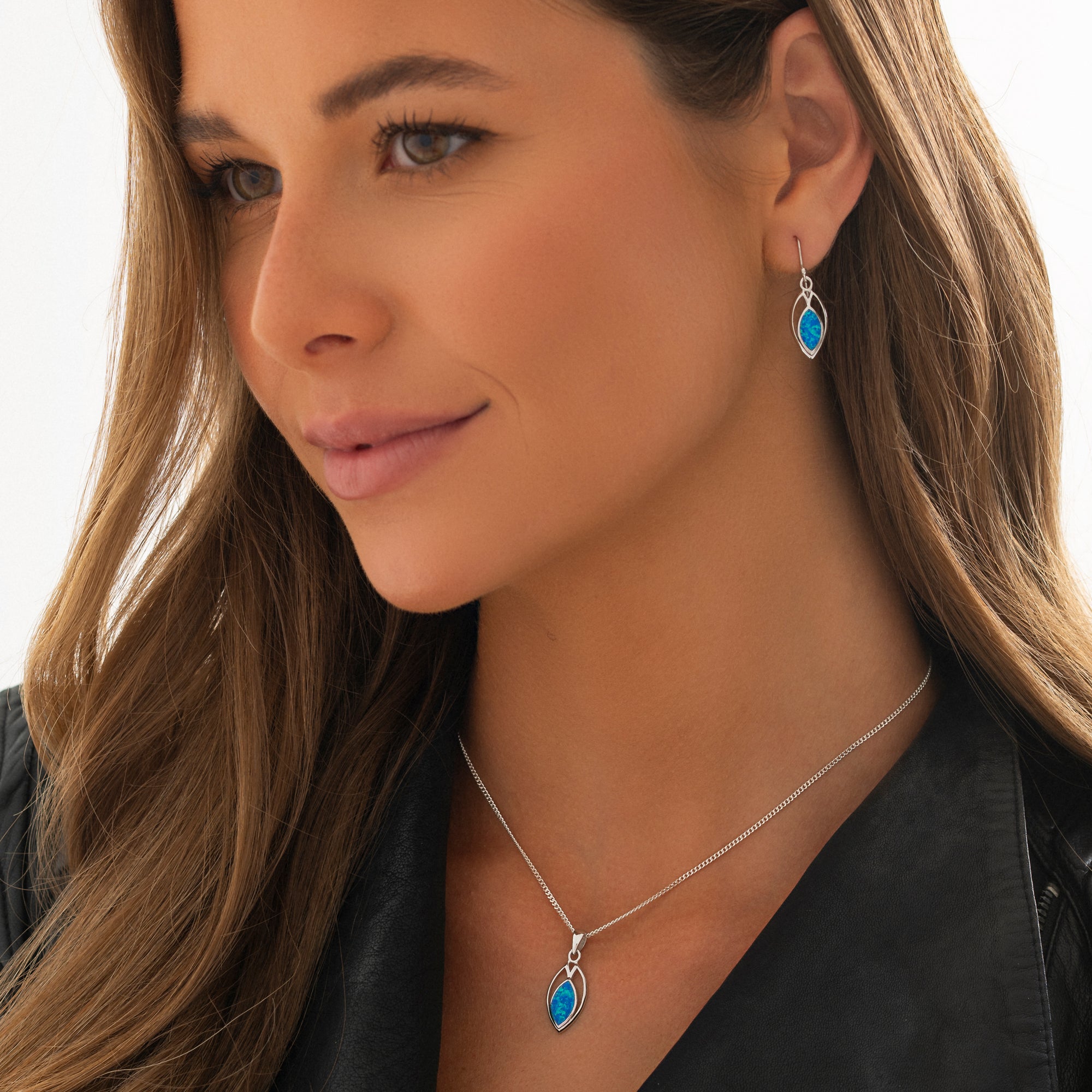 A marquise of shimmering blue opal, surrounded by a gleaming aura of silver.