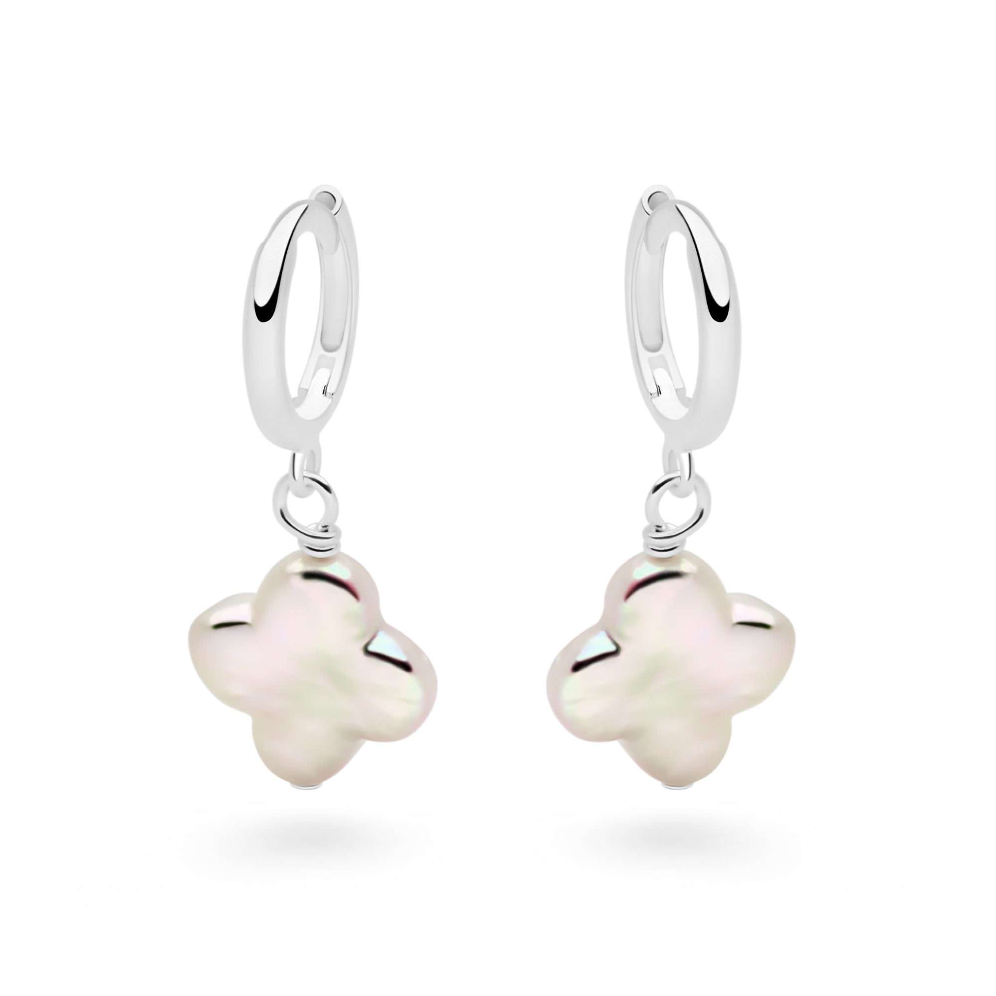 A delicate blend of classic and contemporary, these sterling silver hoop earrings feature a graceful pearl clover charm that sways gently with every movement. The lustrous pearl symbolises purity and grace, while the four-leaf clover brings a touch of luck and timeless charm. Perfect for elevating everyday outfits or adding understated elegance to special occasions.