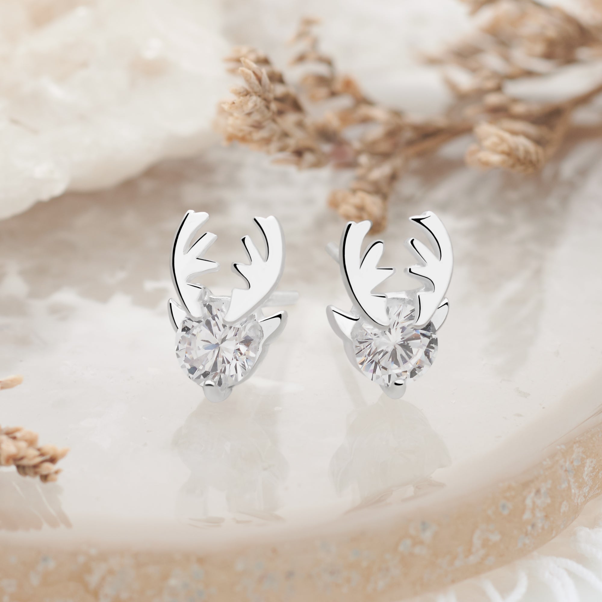 Mini reindeer studs sparkle this festive season with silver accents and a cubic zirconia faces.