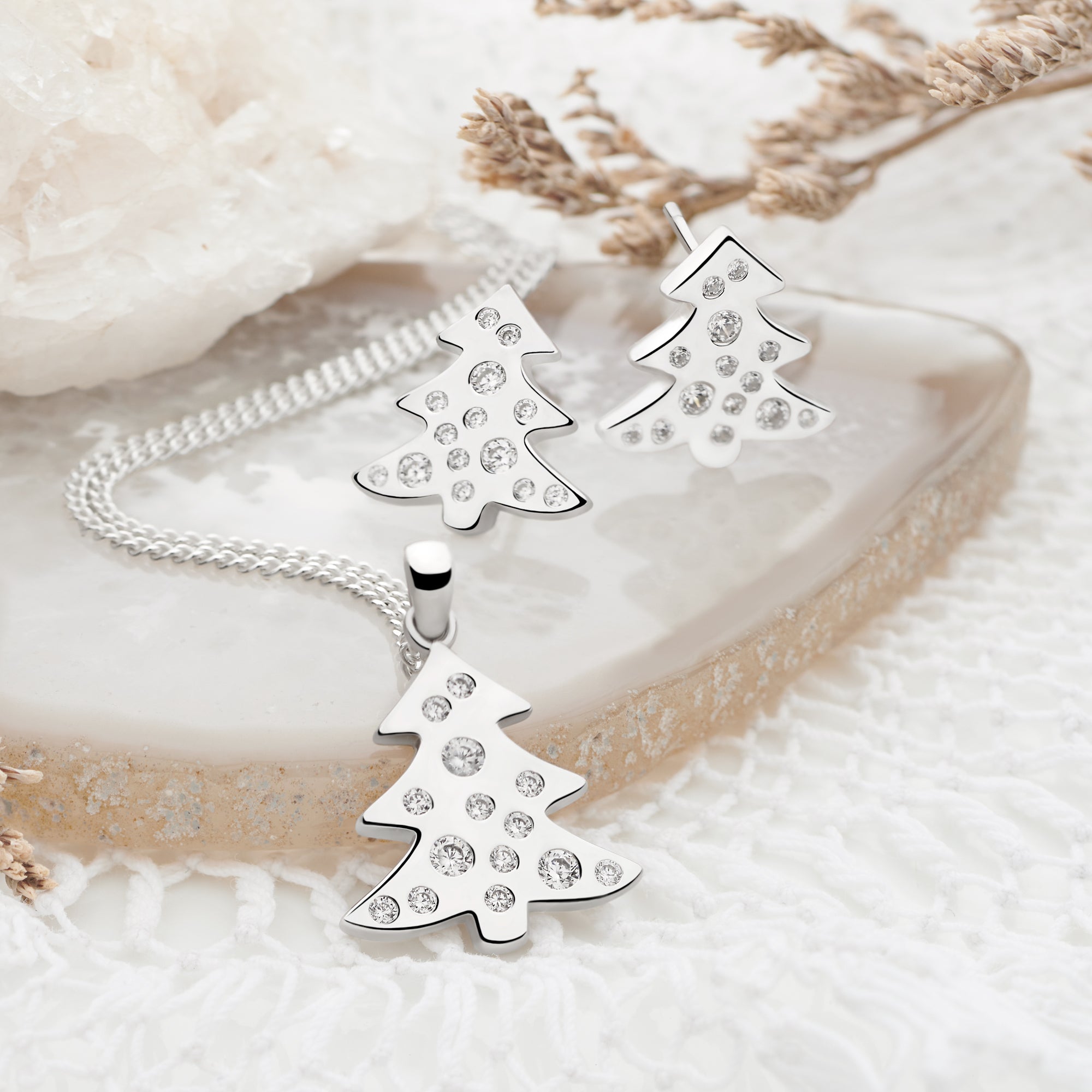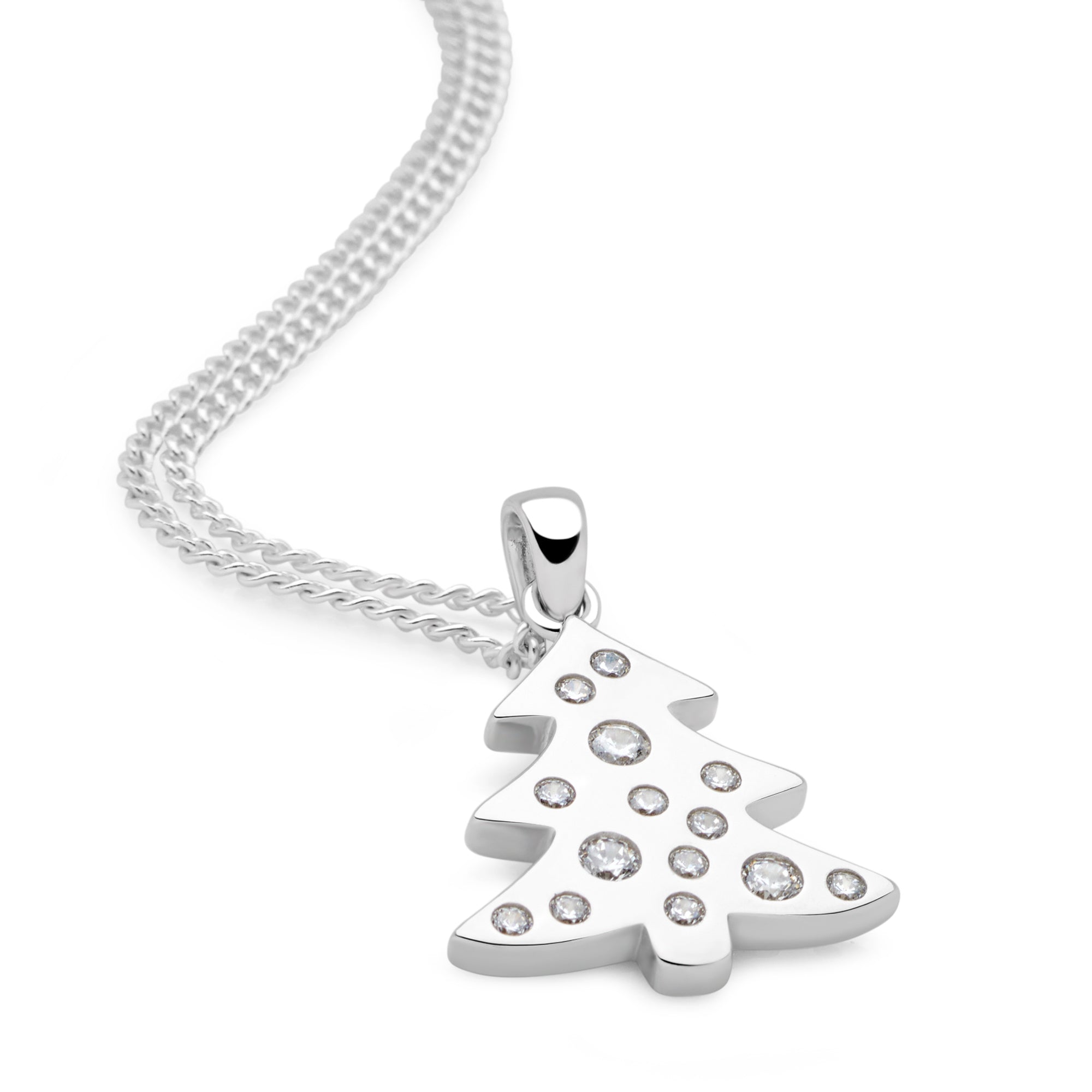 A solid silver Christmas tree speckled with shining cubic zirconia baubles. A luxurious addition to your festive wardrobe.