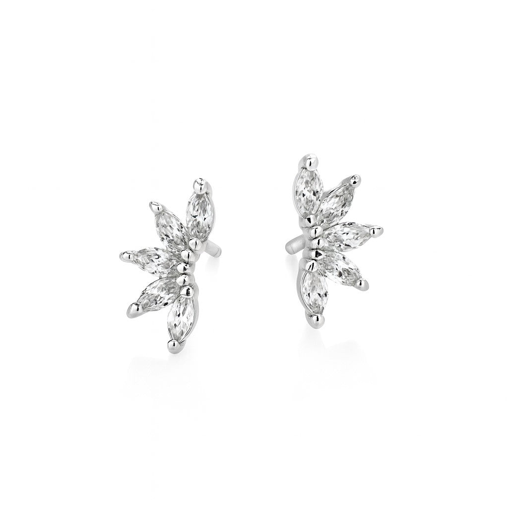 A cascade of light. These silver earrings feature clear marquise cubic zirconias that fan out into a graceful flair, catching the light from every angle. Sophisticated and luminous, they’re the perfect statement for evening elegance or special occasions.